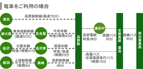 ・JR長野駅東口より長電高速バスで奥志賀高原まで110分